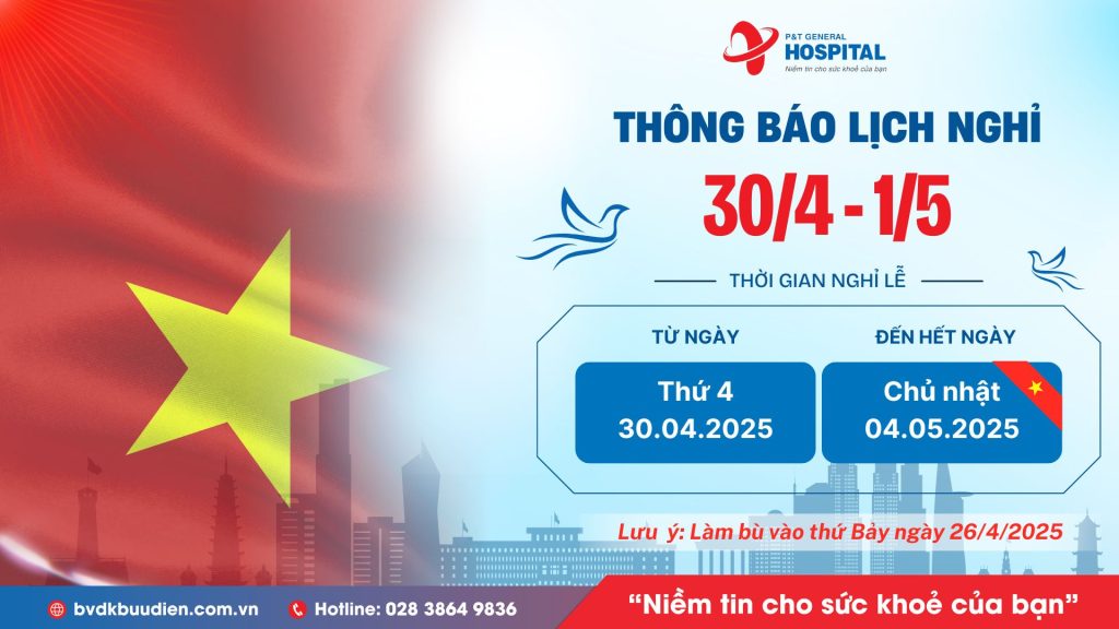 Bệnh viện sẽ làm việc bình thường trở lại vào ngày 05.05.2025 (thứ 2).
