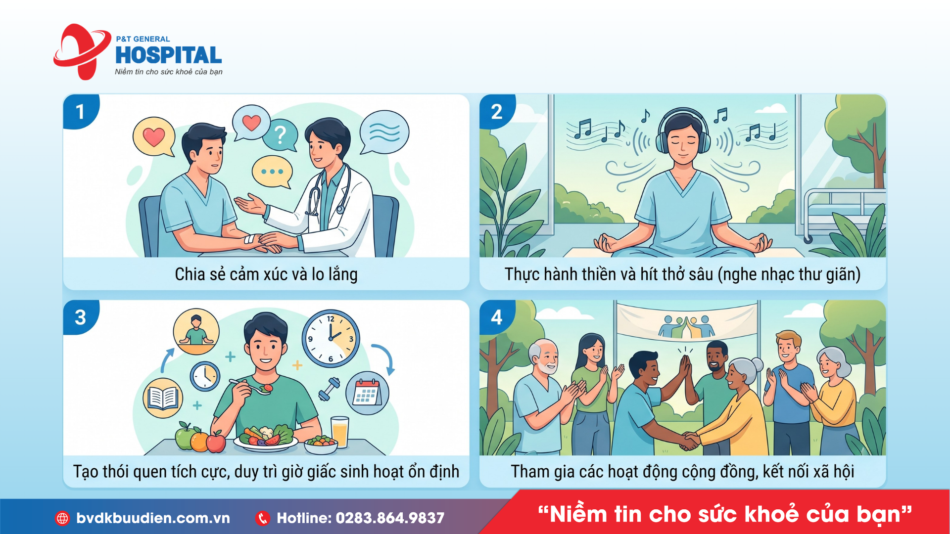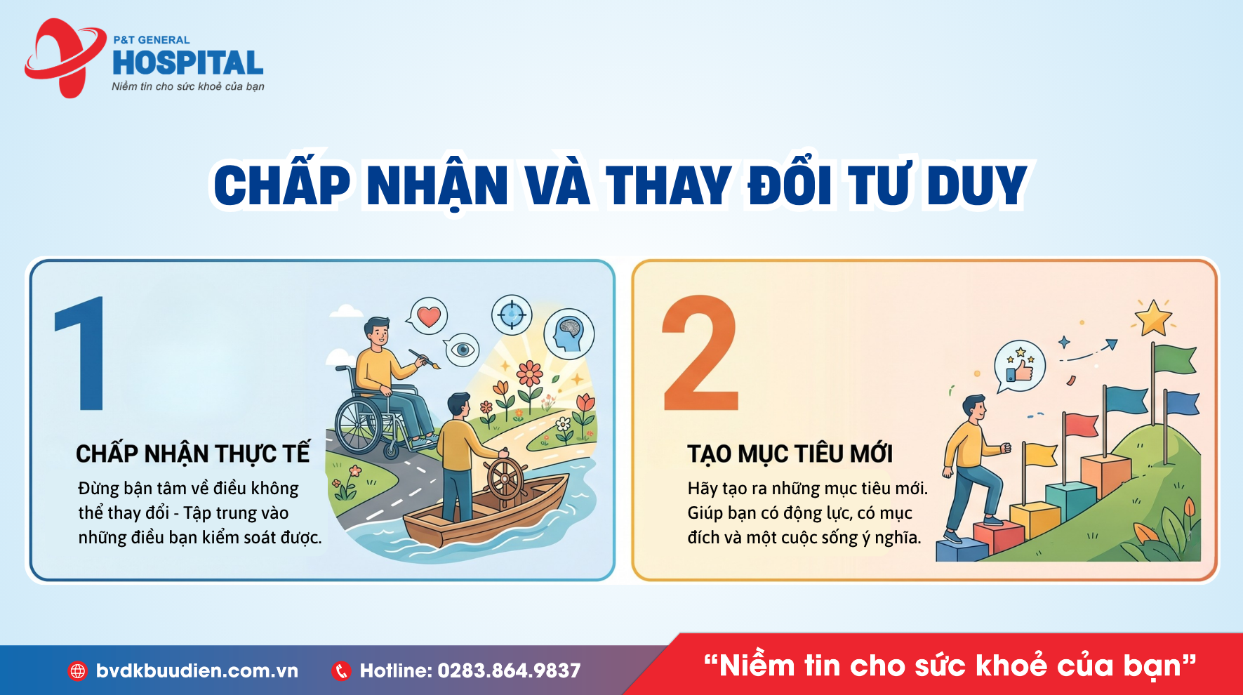 Khi đối diện với các bệnh lý mãn tính hoặc tình trạng sức khỏe nghiêm trọng, điều quan trọng không chỉ là chăm sóc cơ thể mà còn phải chú trọng đến sức khỏe tâm lý. Một tâm lý vững vàng và một chất lượng cuộc sống tốt sẽ giúp bạn dễ dàng đối mặt với mọi thử thách và vượt qua những khó khăn trong quá trình điều trị.
