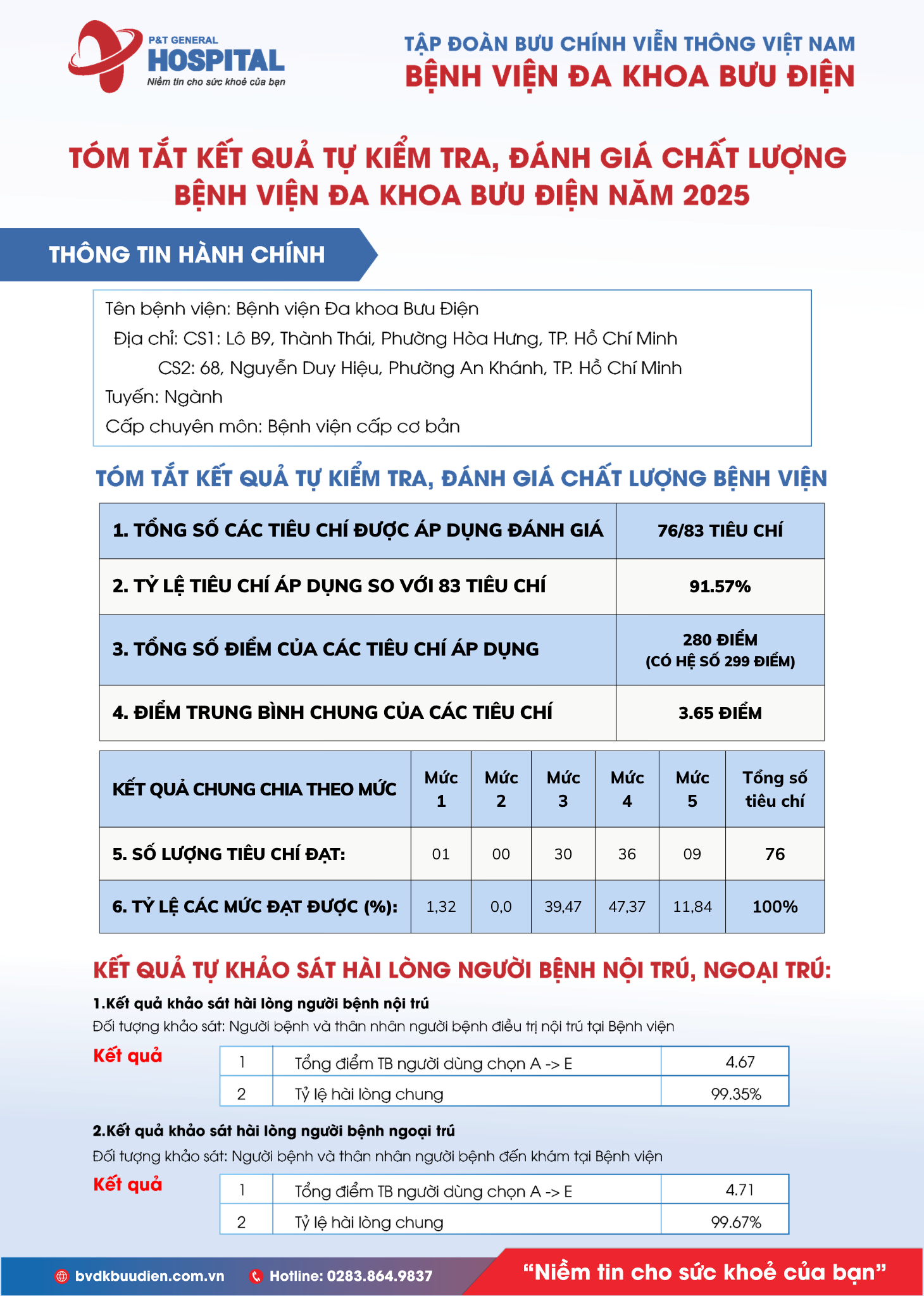 TÓM TẮT KẾT QUẢ KIỂM TRA – ĐÁNH GIÁ CHẤT LƯỢNG BỆNH VIỆN ĐA KHOA BƯU ĐIỆN NĂM 2025