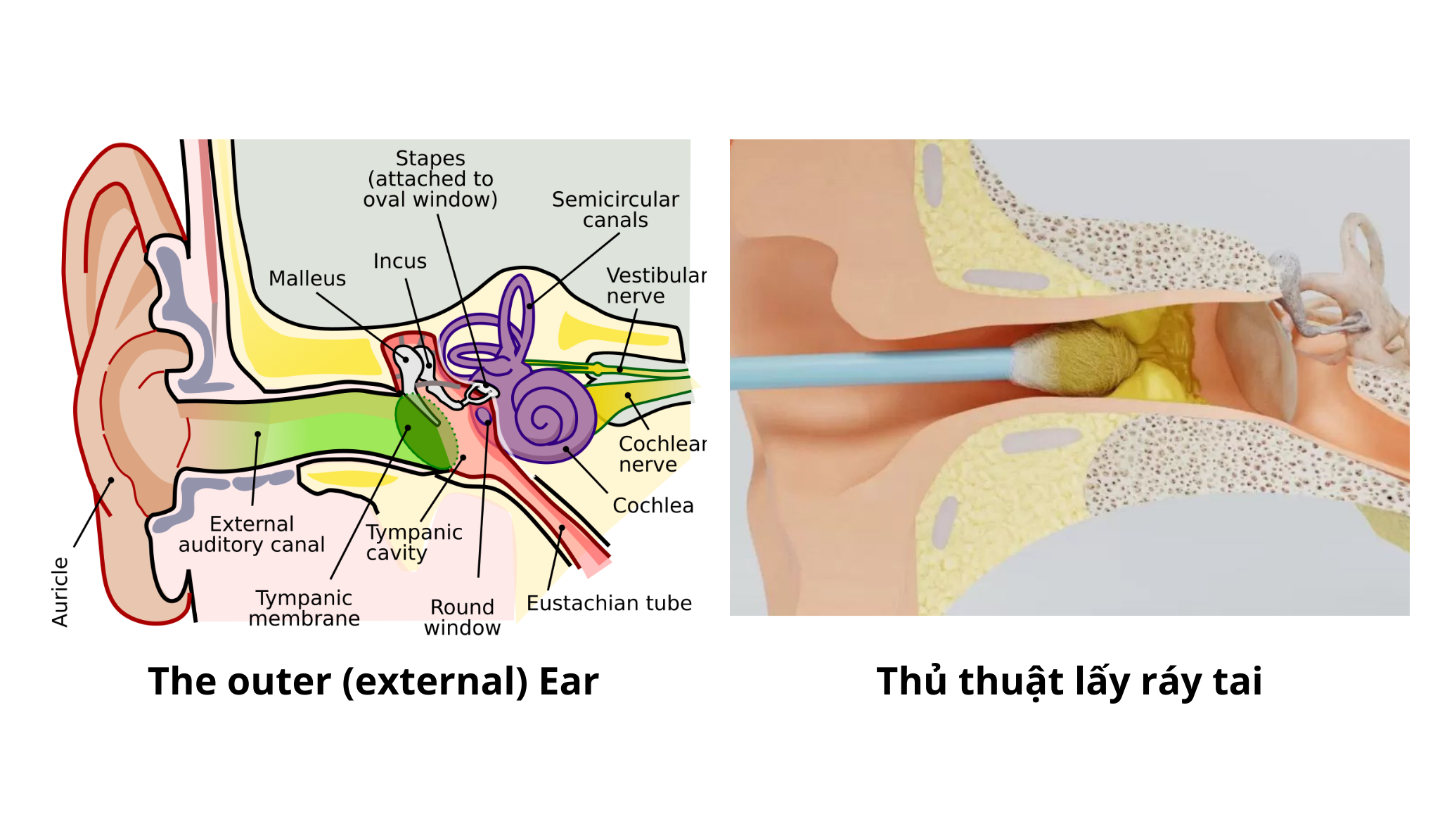 + Không đưa tăm bông vào sâu trong ống tai vì có thể đẩy ráy tai sâu hơn